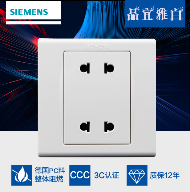 • 商品名称:西门子SIEMENS开关插座面板品宜雅白系列双联扁圆两用四孔10A插座面板