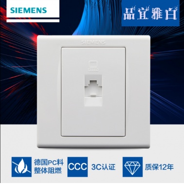 • 商品名称:西门子SIEMENS开关插座面板品宜雅白系列一位八芯电脑超五类网络插座面板